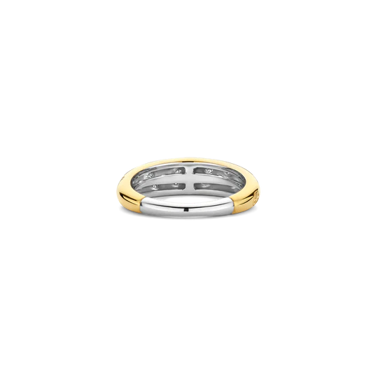 Breng een vleugje elegantie in je dagelijkse outfit met deze charmante TI SENTO goudkleurige ring 12363ZY, een tijdloos ontwerp dat verfijnde eenvoud uitstraalt. Met een slanke vergulde ring, vervaardigd uit hoogwaardig 925 zilver, is deze ring gedecoreerd met een cluster van fonkelende witte zirkonia stenen, die een delicate schittering toevoegen aan elke outfit. Deze delicate ring is het perfecte alledaagse accessoire, dat moeiteloze elegantie biedt en prachtig overgaat van ochtendvergaderingen naar diners bij kaarslicht.