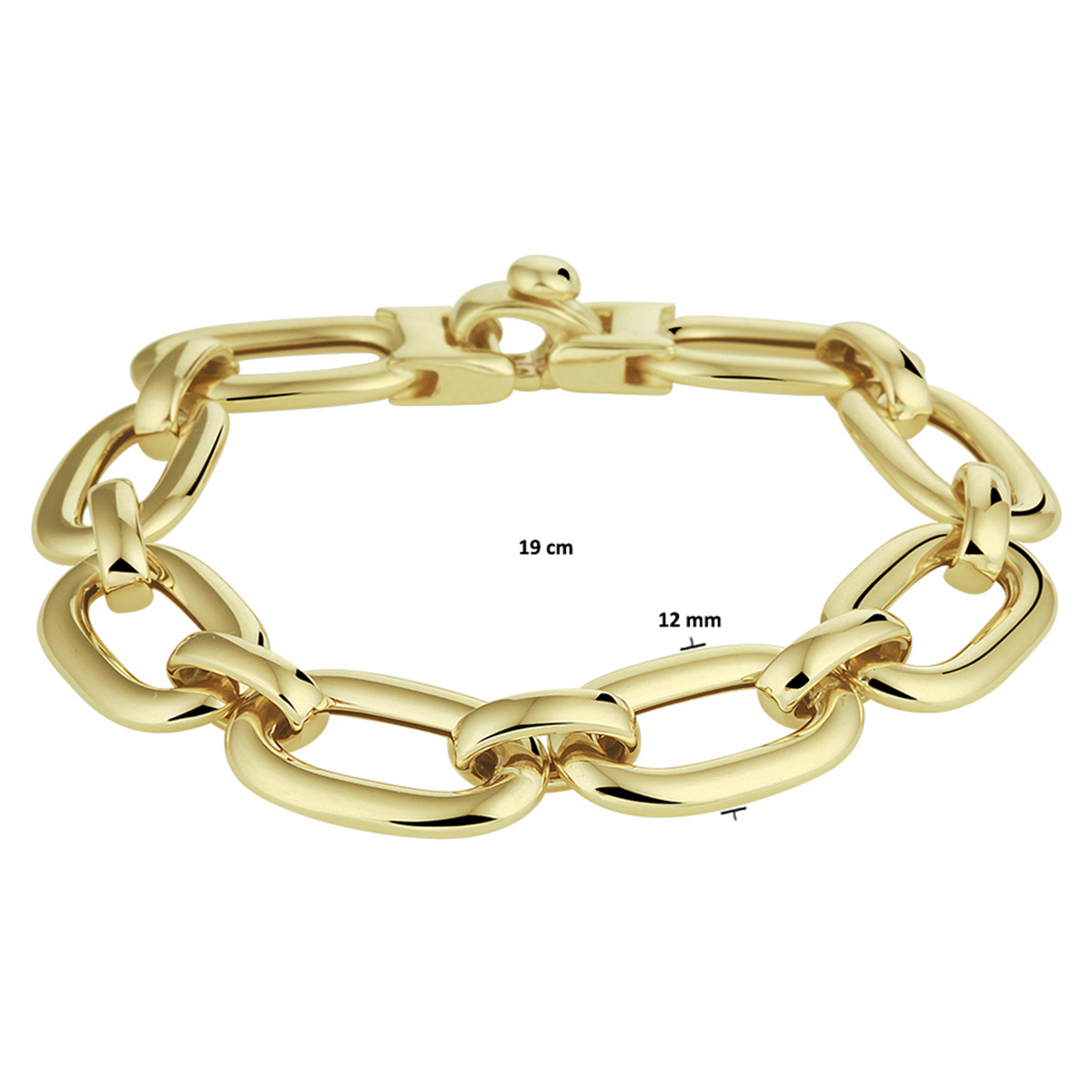 Prachtige 14krt geelgouden schakel armband met een schakelbreedte van 12mm. De armband heeft een draaglengte van 19cm.