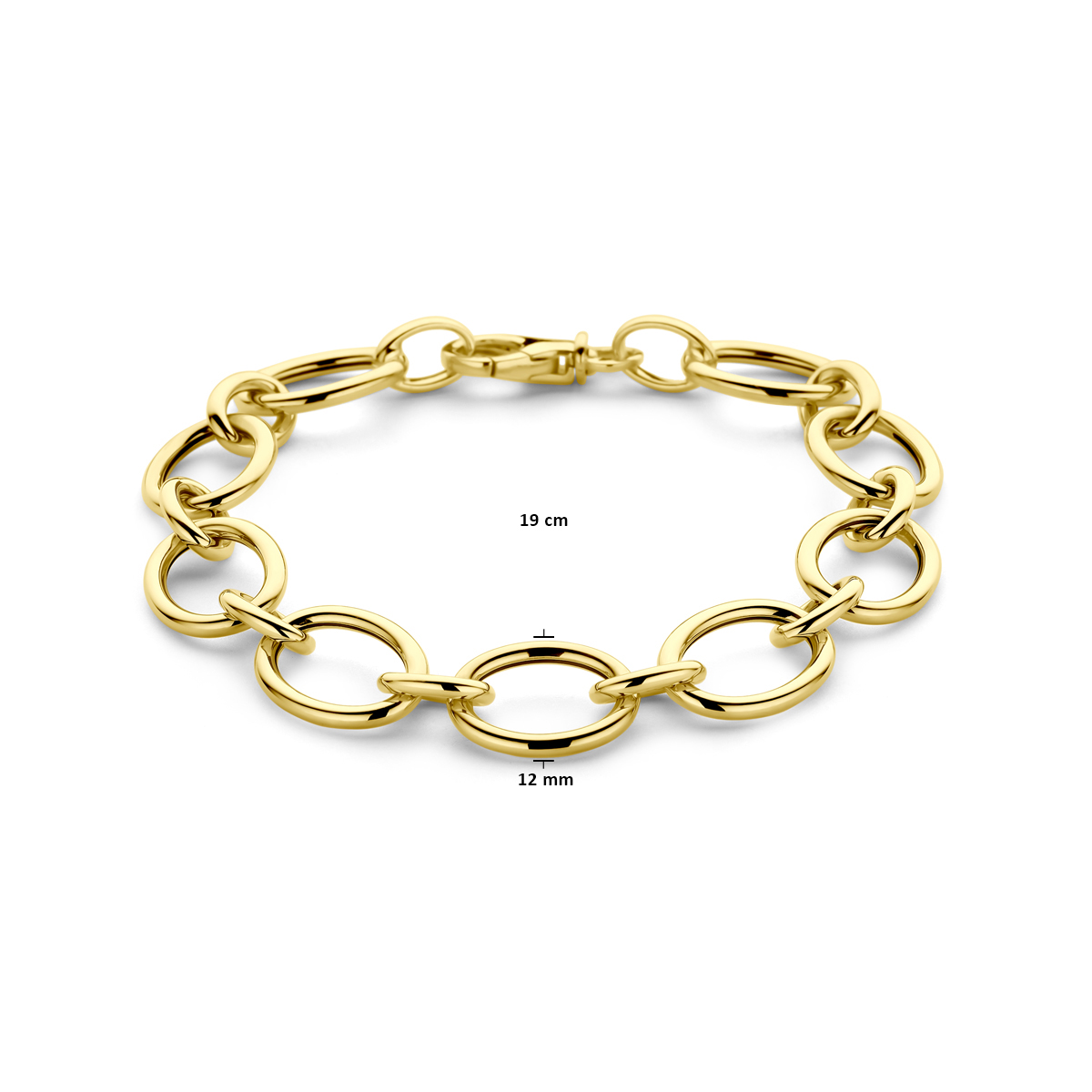 14k Geelgouden armband uitgevoerd met een karabijn sluiting. Deze armband heeft een draaglengte van 19cm. De schakelbreedtes zijn 7.7mm en 12mm.