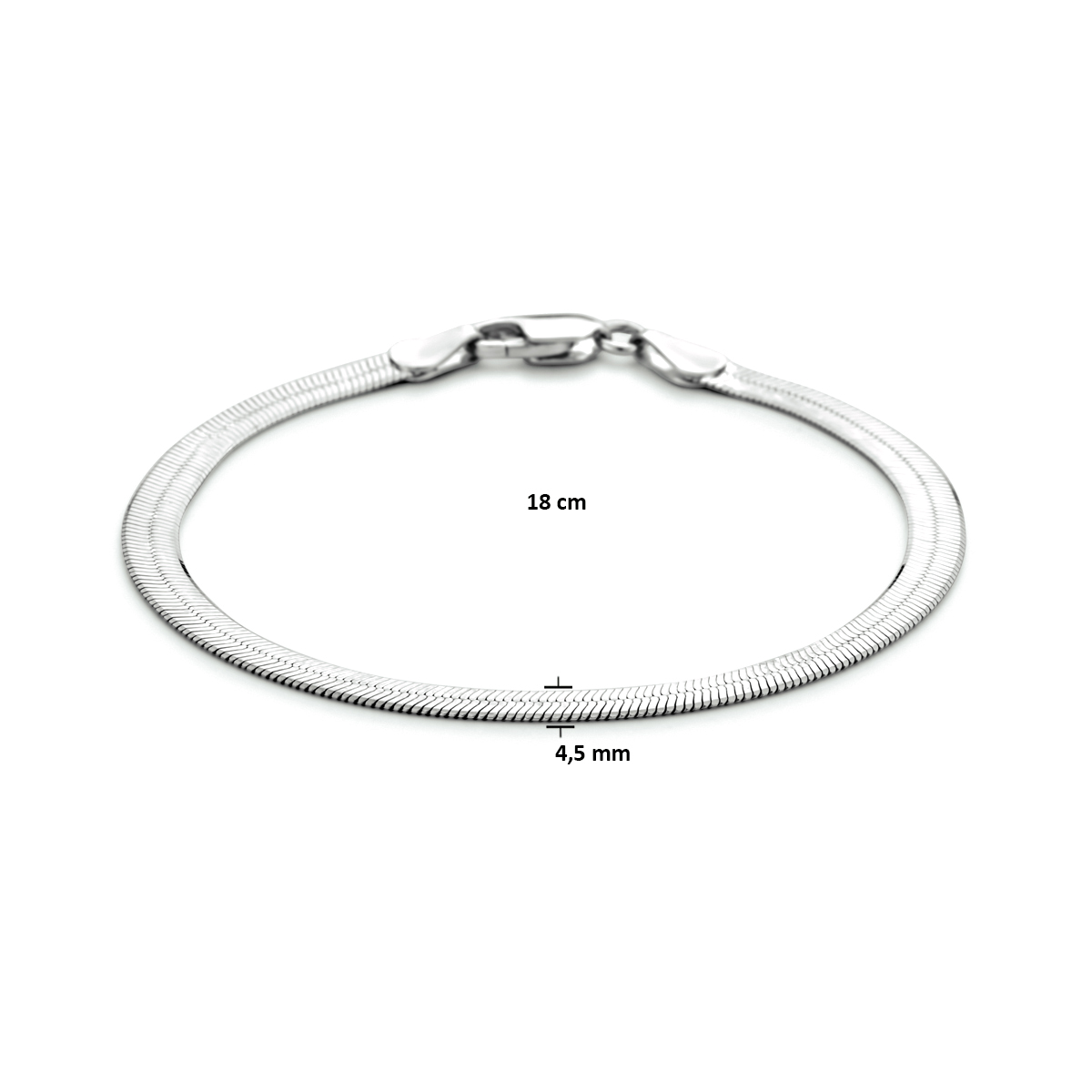 Gerhodineerd 925 zilveren armband met een schakelbreedte van 4.5mm. De armband heeft een draaglengte van 18cm en een stevige karabijn sluiting.