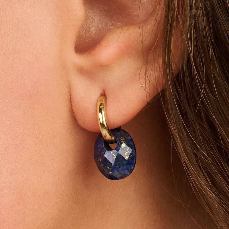 Hou je van speels en stylish? Dan zijn deze natuurstenen oorbedels iets voor jou. De ovaalvormige bedels zijn gemaakt van lapis lazuli met facetslijpsel. Ze zijn 12 mm hoog en passen om oorringen met maximaal 3 mm doorsnede. Prachtig samen met gouden oorbedels van Blush.
