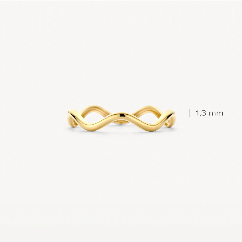 Deze speelse ring van 14k geelgoud springt meteen in het oog door zijn golvende design. De band heeft een doorsnede van 1,3 mm en hoewel deze ring genoeg aandacht trekt op zichzelf past hij het ook heel mooi bij andere (aanschuif)ringen uit onze collectie.