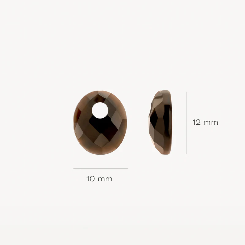 Hou je van speels en stylish? Dan zijn deze natuurstenen oorbedels iets voor jou. De ovaalvormige bedels zijn gemaakt van smokey quartz met facetslijpsel. Ze zijn 12 mm hoog en passen om oorringen met maximaal 3 mm doorsnede. Prachtig samen met gouden oorbedels van Blush.