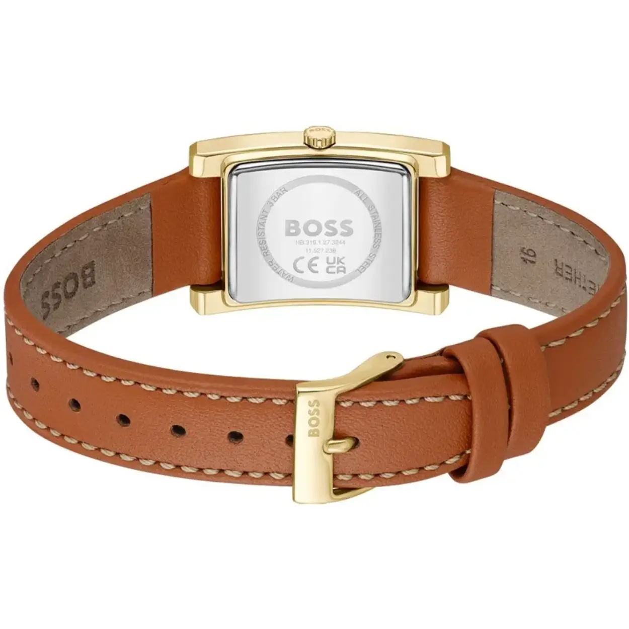 - Horlogeband gemaakt van leer, in de kleur bruin, met gesp