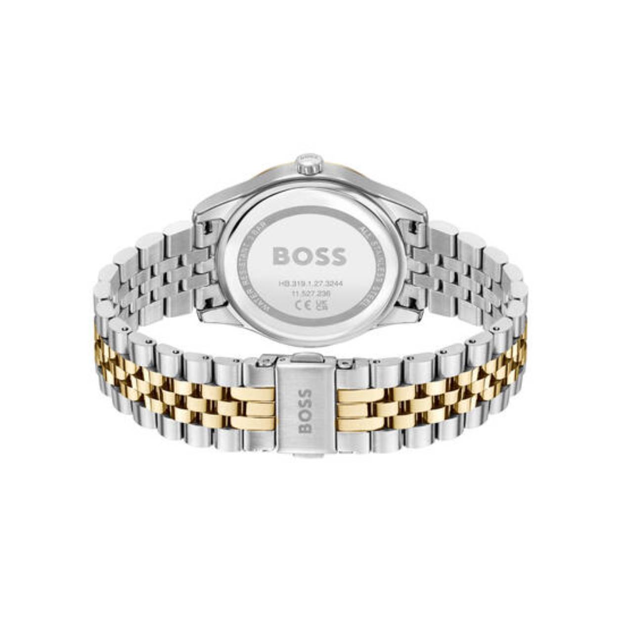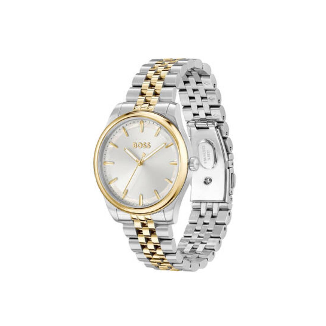 Bicolor stalen horloge van BOSS by Hugo Boss met een complexe schakelband. Een klassiek ontwerp dat vrijwel bij elke outfit of gelegenheid op zijn plaats is.