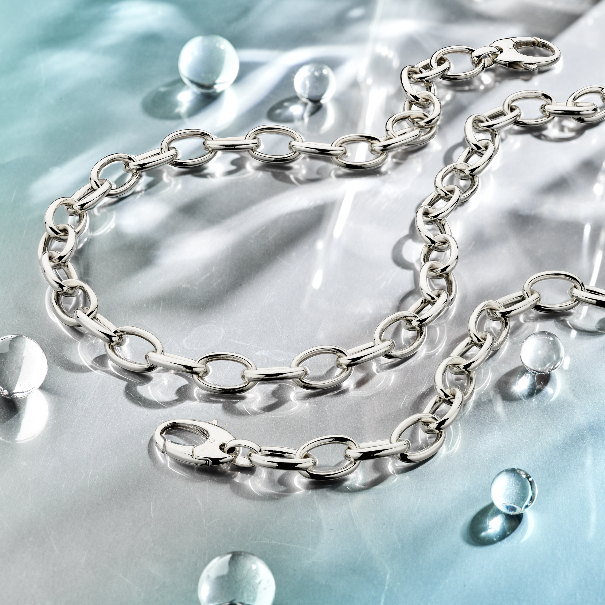 925 Zilveren collier met draaglengtes van 49 en 50cm. Uitgevoerd met een karabijn sluiting.