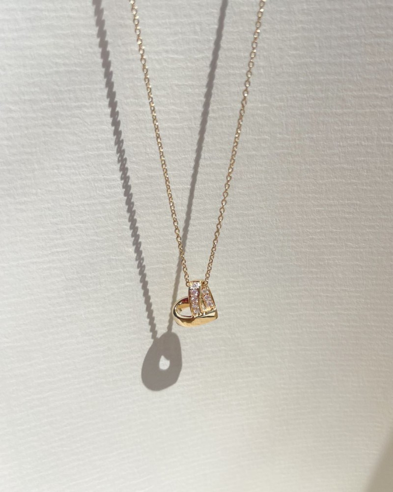 Verfijnd collier met een opvallende hanger in hartvorm, gezet met diamant.