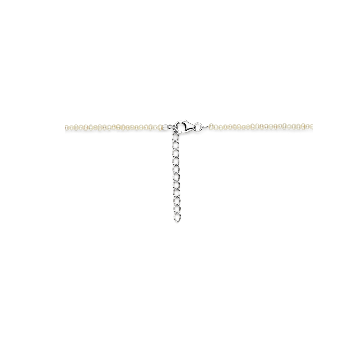 Gerhodineerd 925 zilveren collier uitgevoerd met parels. Het collier heeft draaglengtes van 41-45cm.