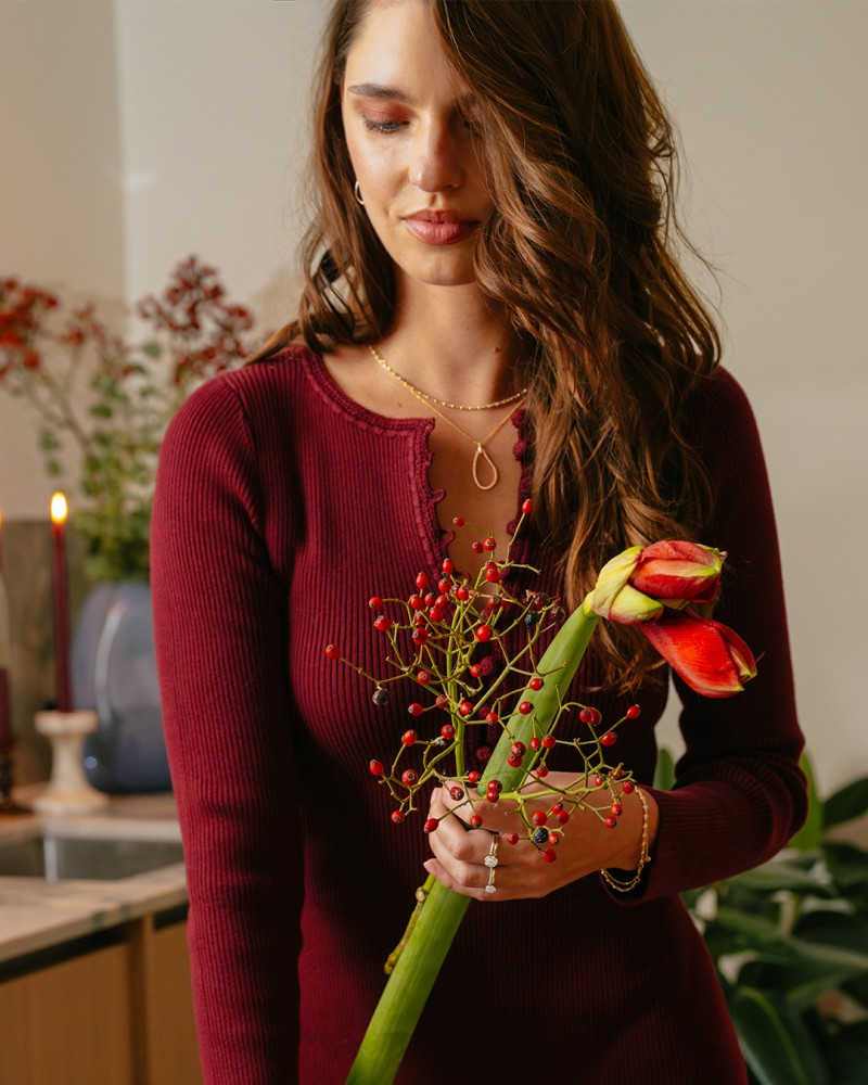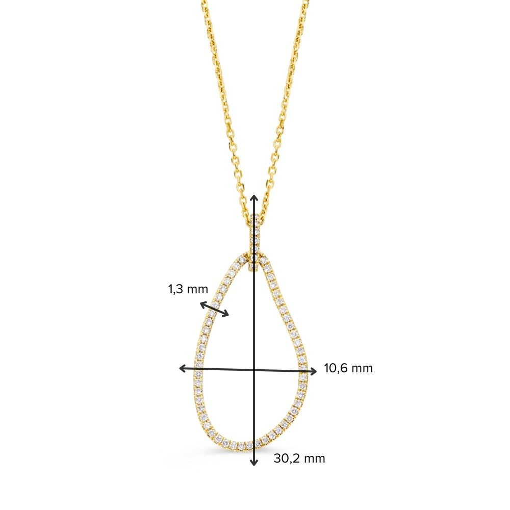 Elegante, geelgouden hanger in organische vorm. De hanger is gezet met fonkelende briljanten. De hanger wordt geleverd met een 14kt gouden collier met ankerschakel.