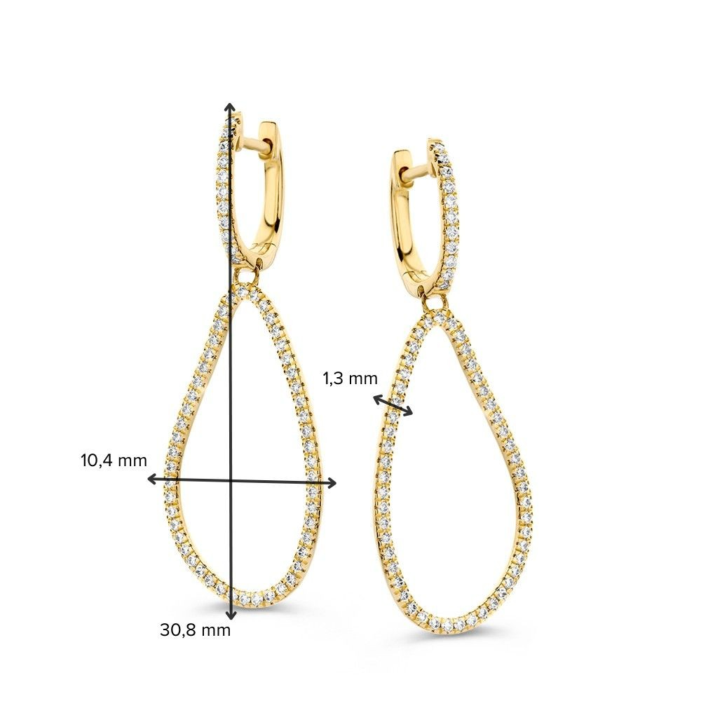 Stijlvolle en speelse gouden oorbellen met diamant. De oorhangers hebben een opvallende organische vorm en zijn een schitterend plaatje in het oor!