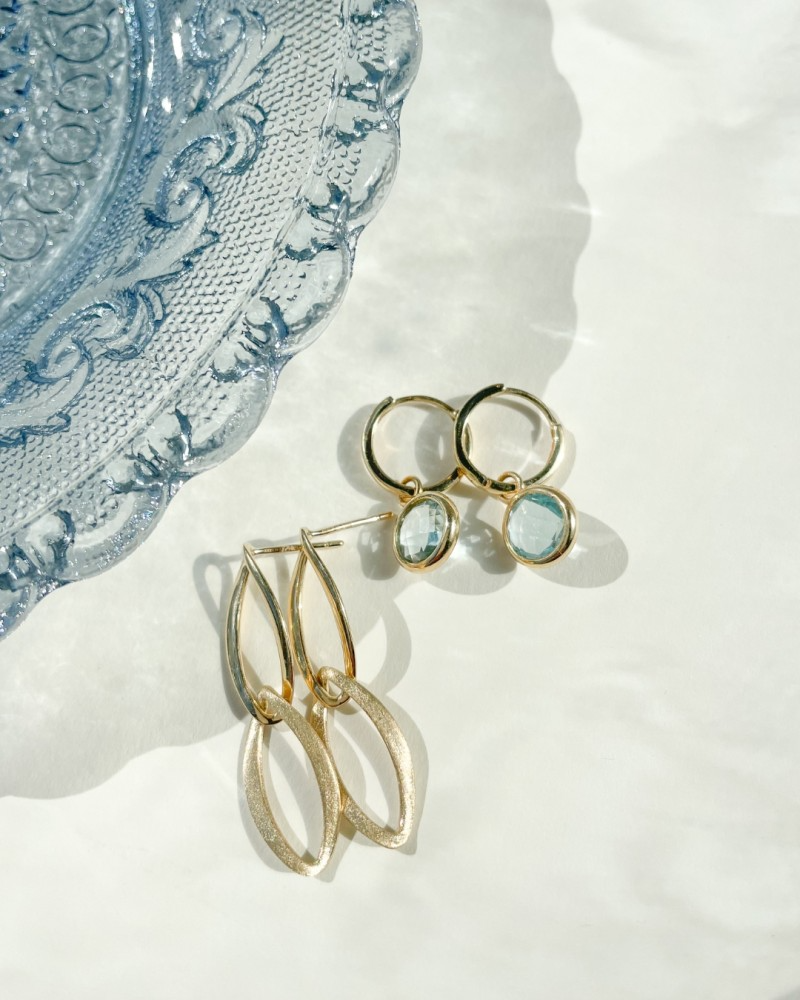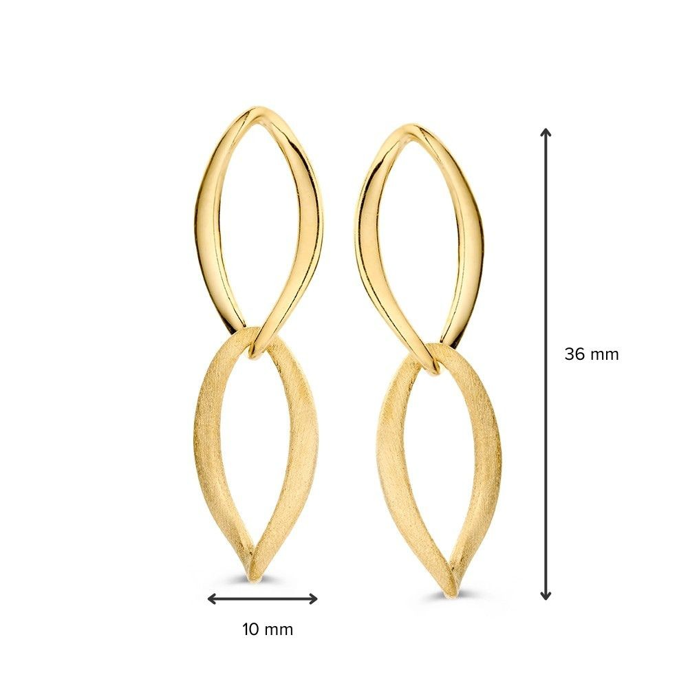 Speelse, geelgouden schakeloorbellen waarbij één schakel een gepolijste en één een gematteerde afwerking heeft.