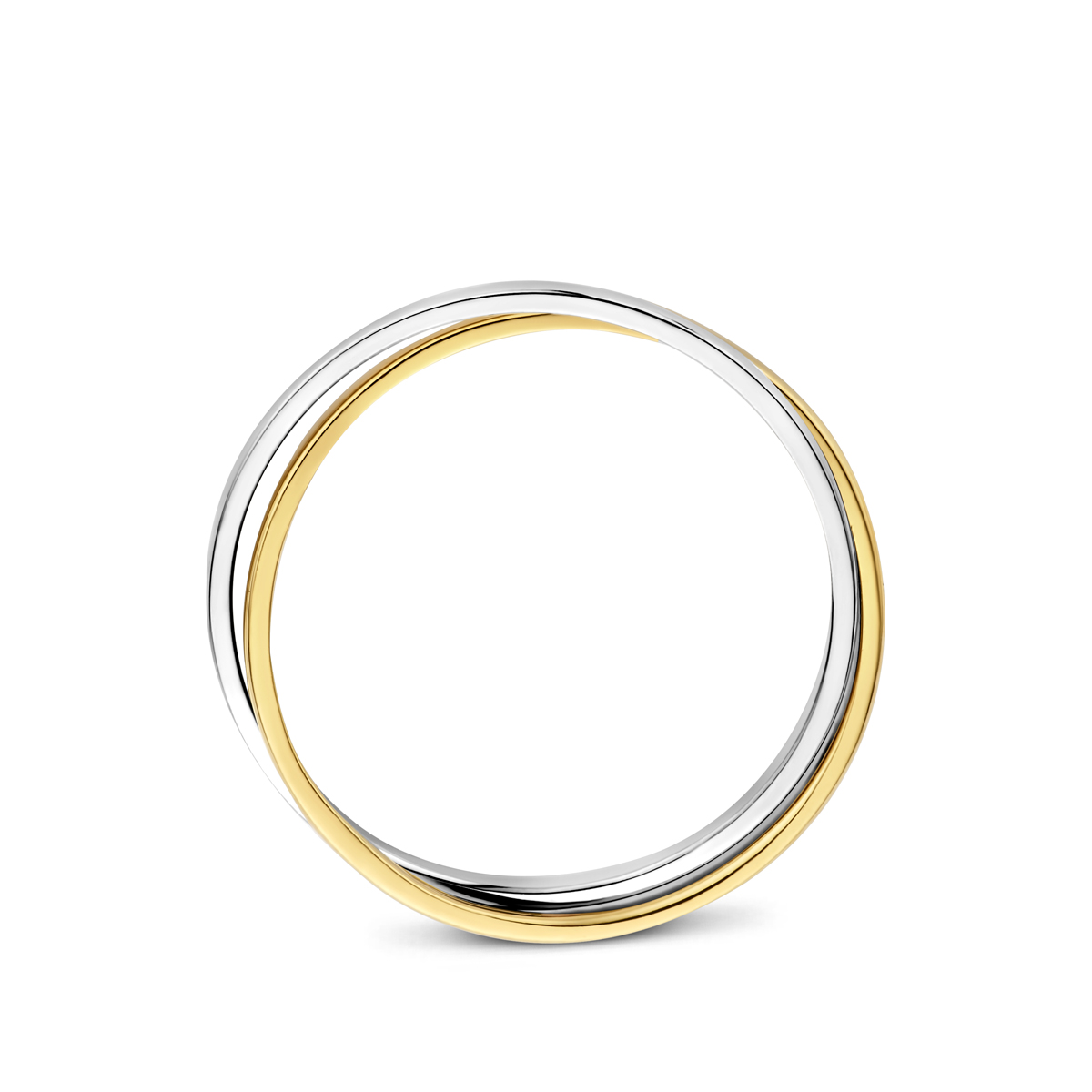 14k Bicolor geel en witgouden ring bestaat uit 2 losse ringen in elkaar geplaatst. De losse ringen hebben elk een breedte van 1.5mm.