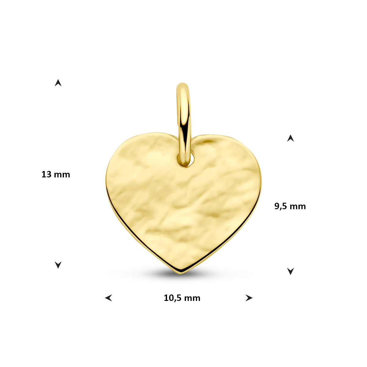 14k Geelgouden graveerhanger in de vorm van een hartje met een totale hoogte van 13mm en een dikte van 0,6mm.