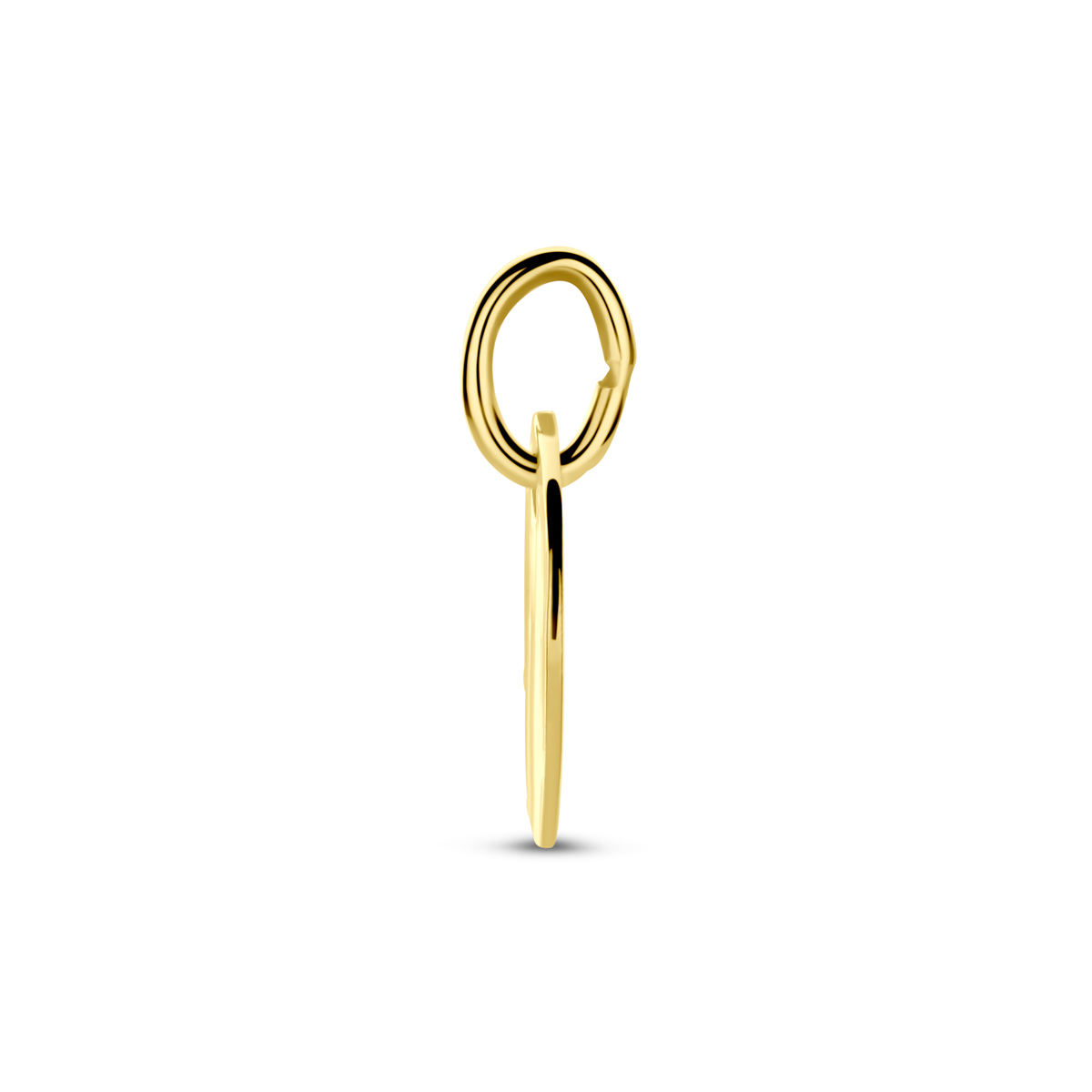 14k Geelgouden graveerhanger in de vorm van een rondje met een totale hoogte van 13mm en een dikte van 0,5mm.