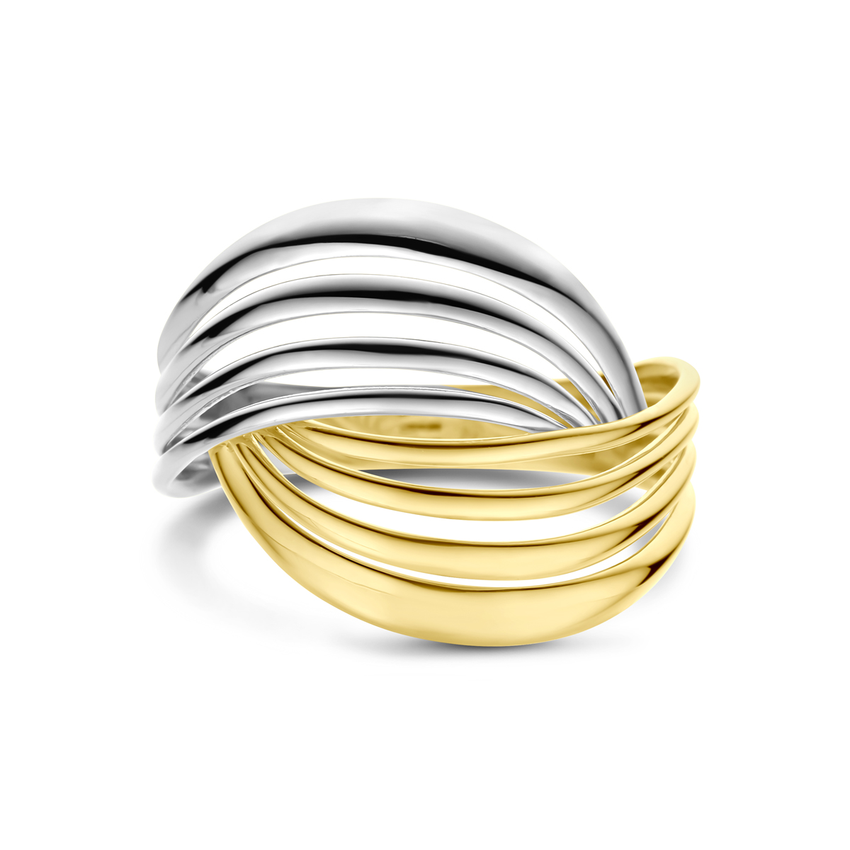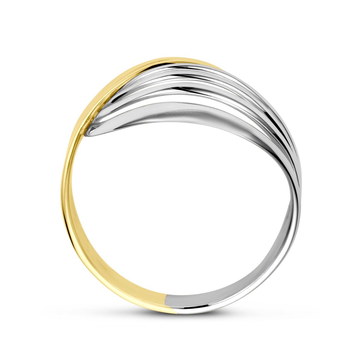 14k Bicolor wit- en geelgouden ring met een breedte van 16mm.