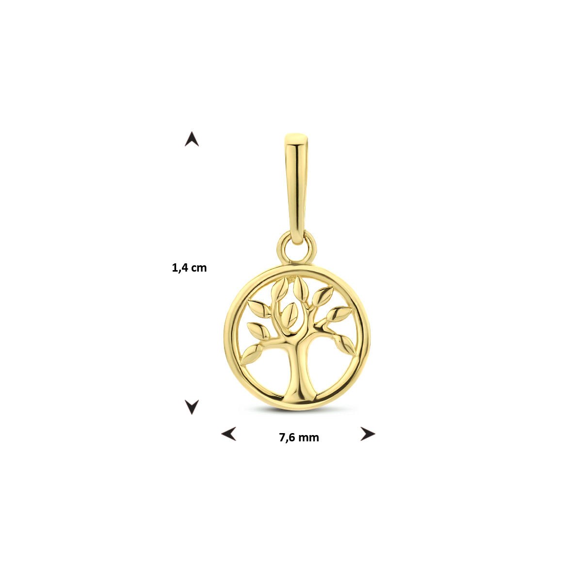 14k Geelgouden levensboom hanger. De hanger heeft een diameter van 7.6mm.