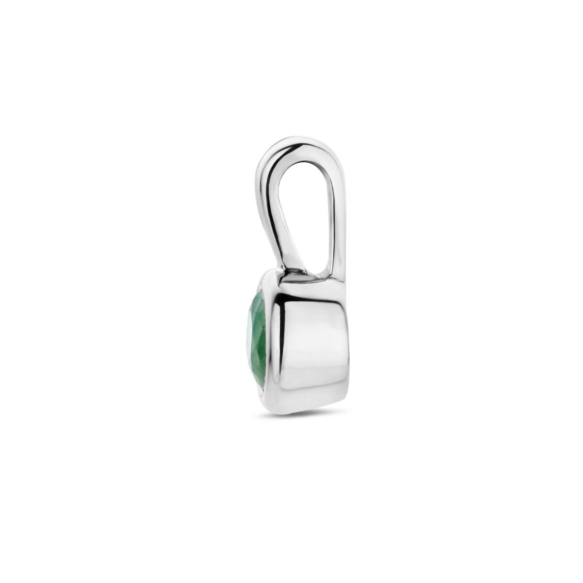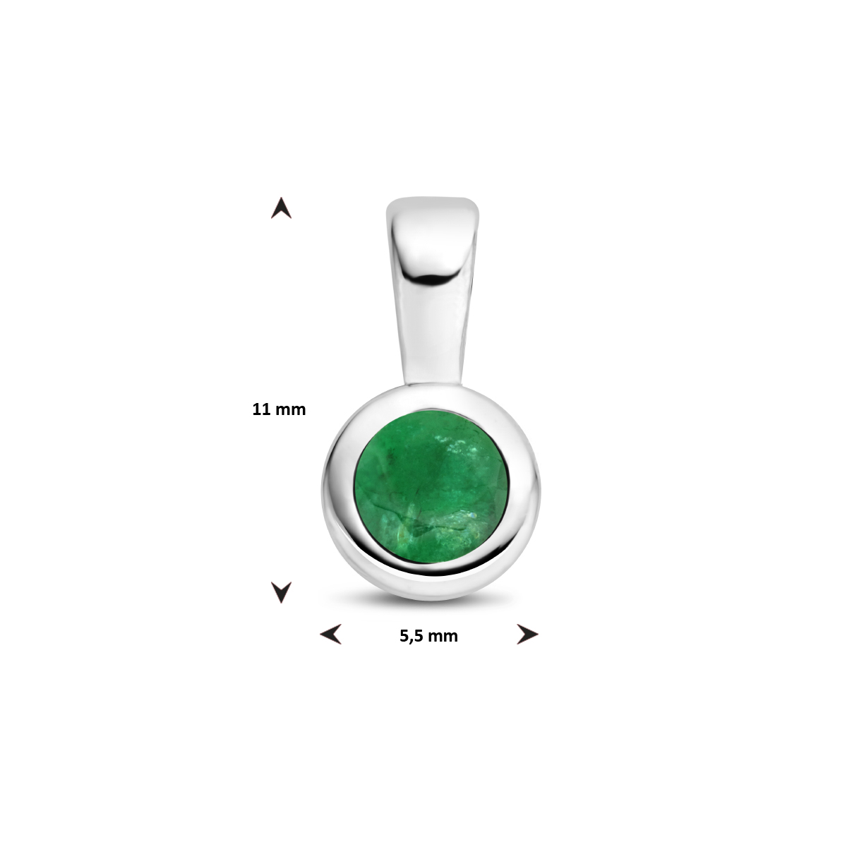 Gerhodineerd 925 geboortesteen zilveren hanger uitgevoerd met een schitterende smaragd. De hanger heeft een afmeting van 11x5.5mm. De smaragd heeft een steengewicht van 0.25ct.