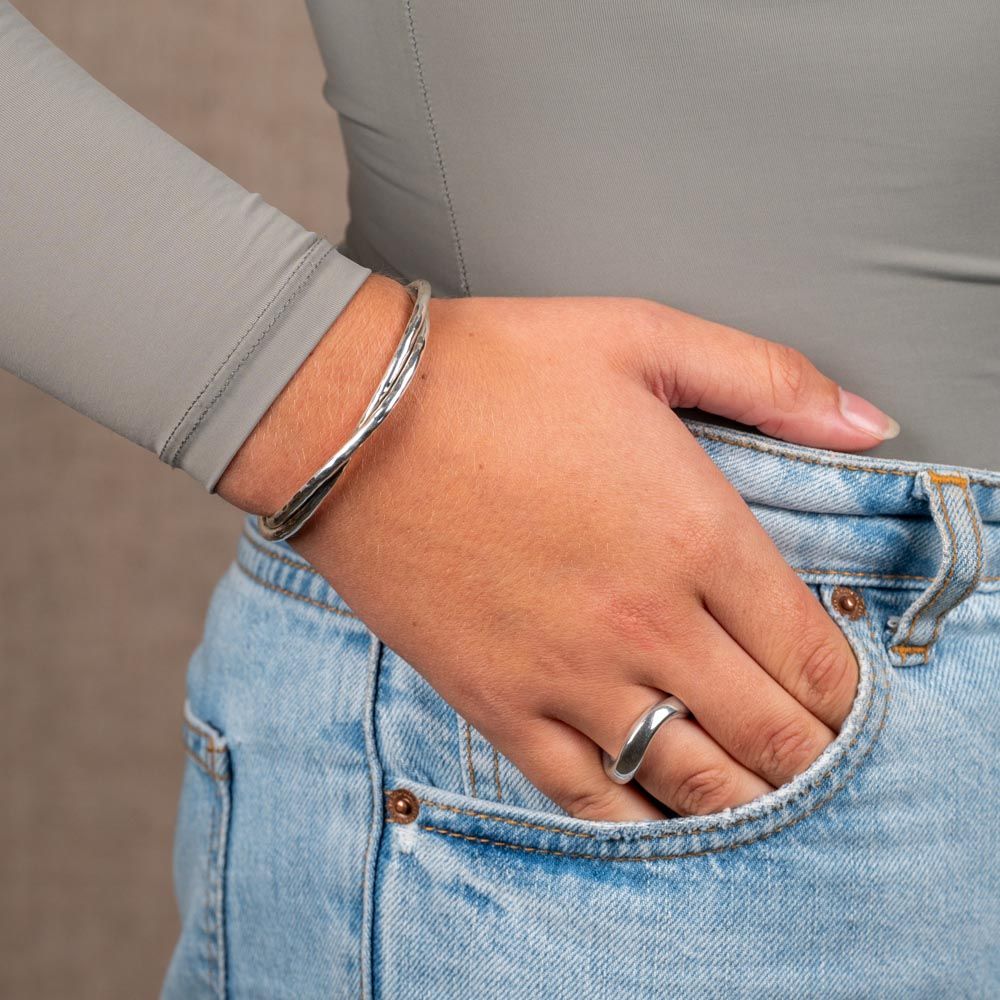 Klemarmband gemaakt van 925 sterling zilver met hamerslag. De armband heeft een gedraaid effect, wat het speels en uniek maakt! Combineer met de andere sieraden van Jéh Jewels voor een complete look.