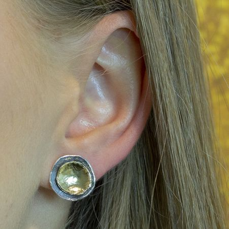 Oorstekers van Jéh Jewels met een buitencirkel van 925 sterling geoxideerd zilver, de binnen cirkel is gemaakt van zilver verguld.