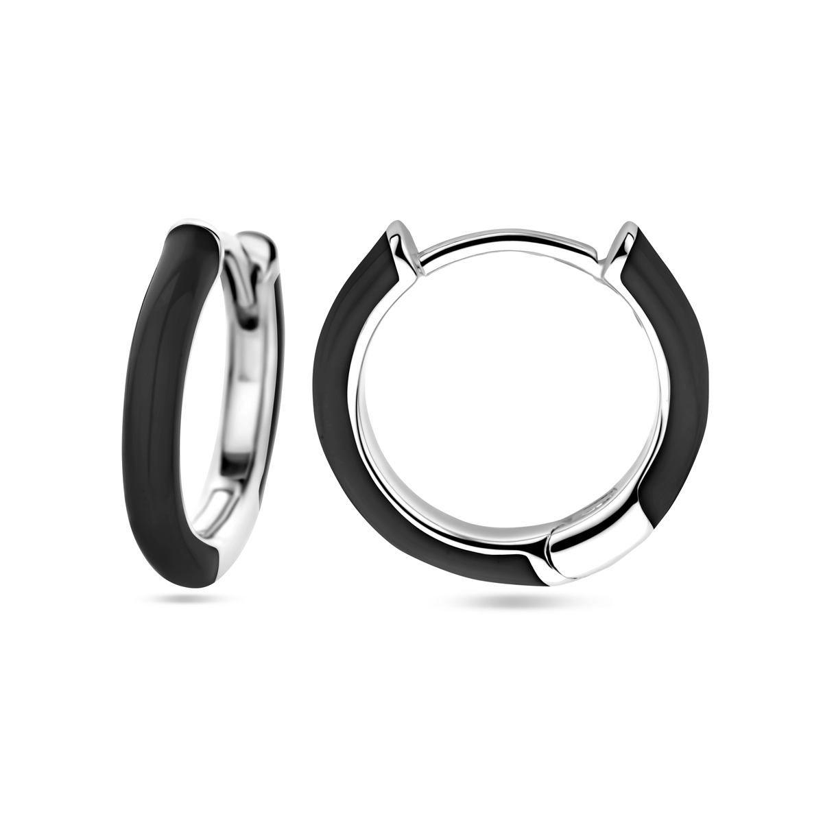 Gerhodineerd 925 zilveren klapoorringen uitgevoerd met zwarte emaille. De klapoorringen hebben een afmeting van 13x2mm.