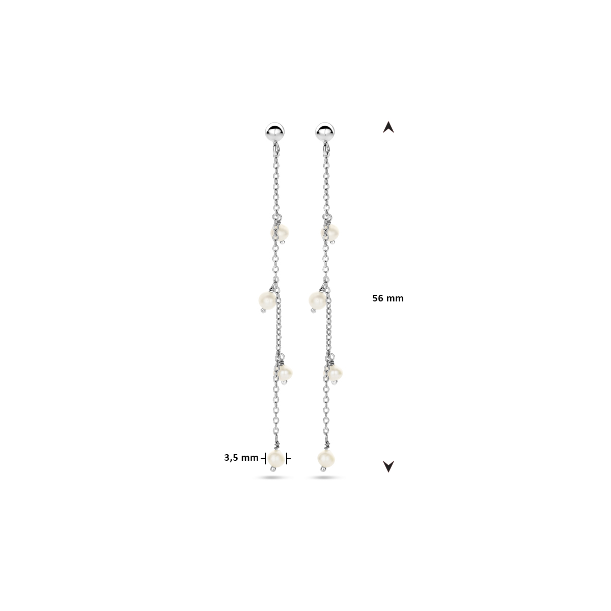 Gerhodineerd 925 zilveren oorhangers uitgevoerd met zoetwaterparels. De oorhangers hebben een totale hoogte van 56mm.