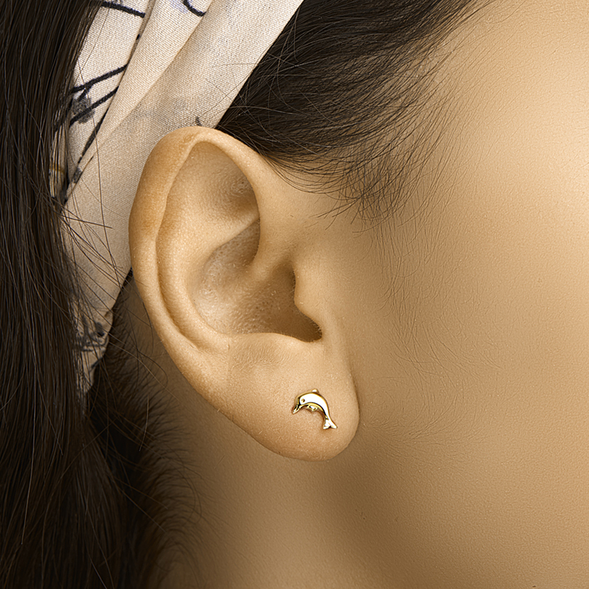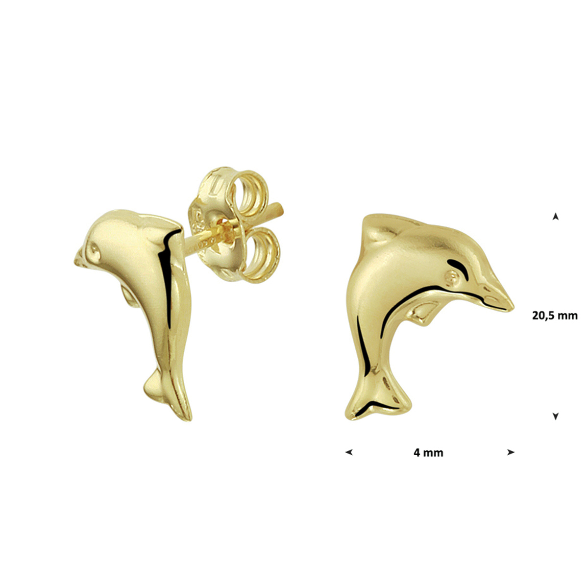14k Geelgouden oorknoppen in de vorm van een dolfijn met een afmeting van 8x6.5mm. De oorknoppen zijn te combineren met bijpassende dolfijn sieraden uit onze collectie.
