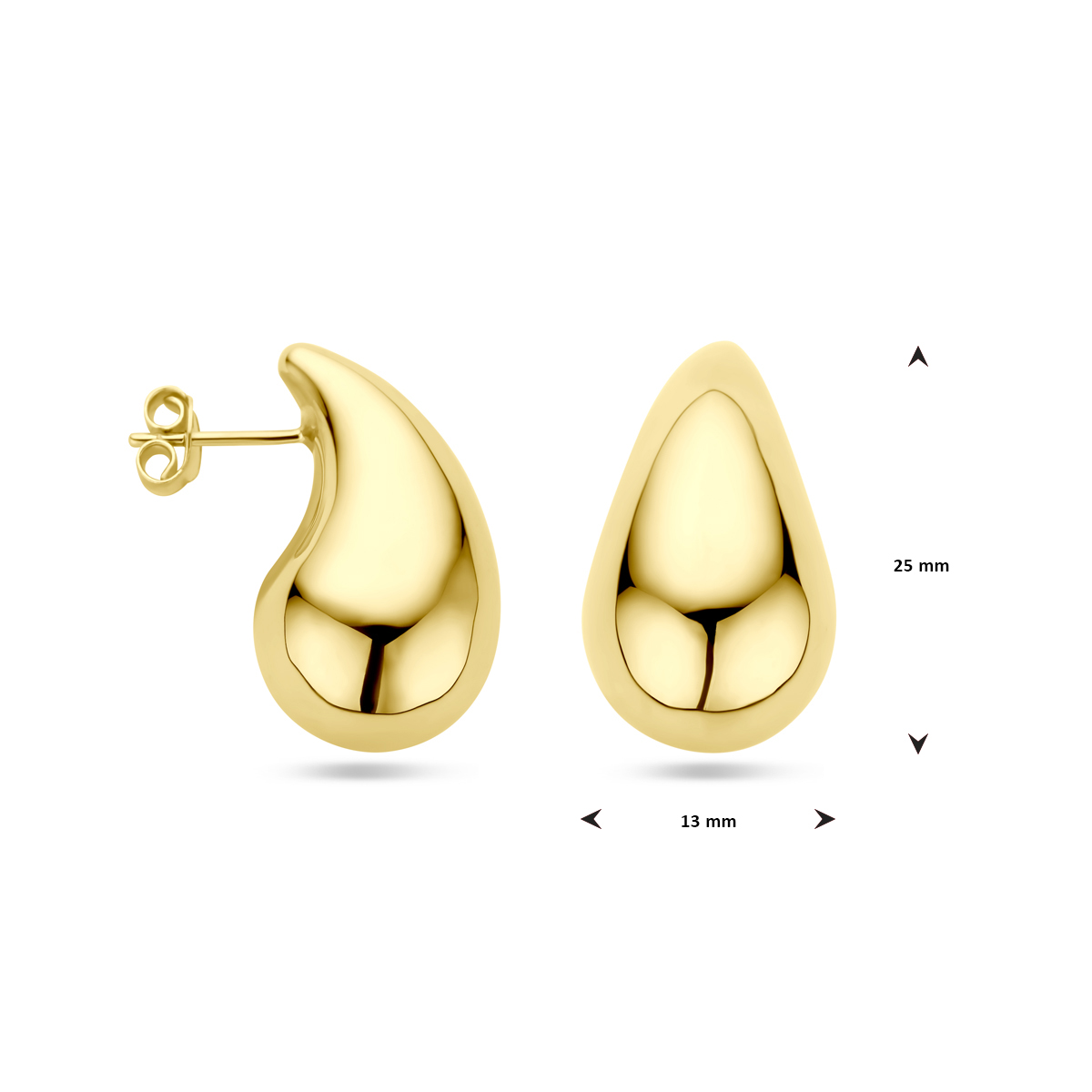14k Geelgouden oorknoppen in de vorm van een druppel.