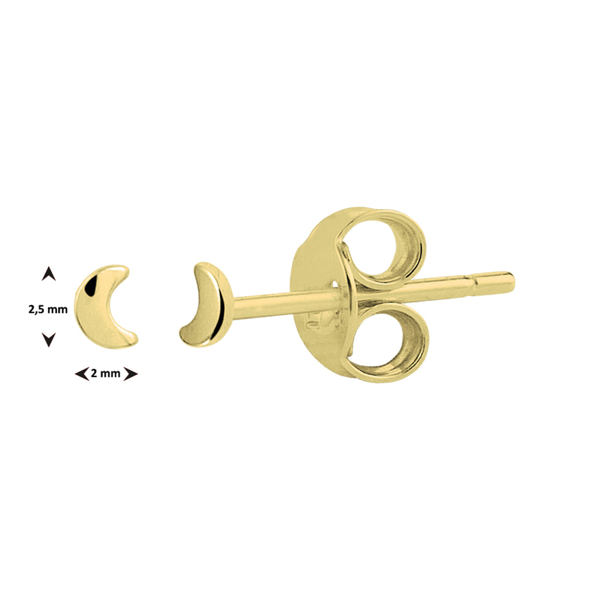 Deze trendy geelgoud op zilveren mini maan oorknoppen hebben een afmeting van 2.5x2mm. Door de eenvoud kunnen deze oorknoppen perfect worden gedragen met andere sieraden. Laat jezelf stralen met deze blinkende maan oorknoppen!