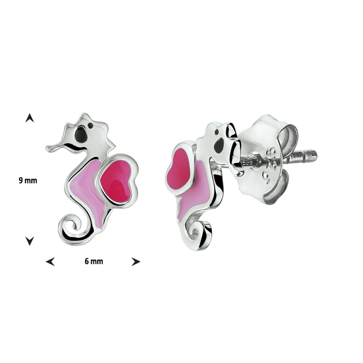Schattige gerhodineerd zilveren zeepaard oorknoppen uitgevoerd met emaille. Info: Gerhodineerd zilver is door de rhodiumlaag beter bestand tegen verkleuren en krassen.