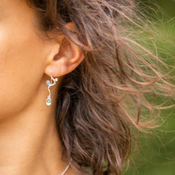 Deze sterling zilveren oorbellen hebben elk een 6 x 4 mm blauwe kwarts, een 4 x 3 mm blauwe topaas en een 2 mm ronde blauwe topaas.