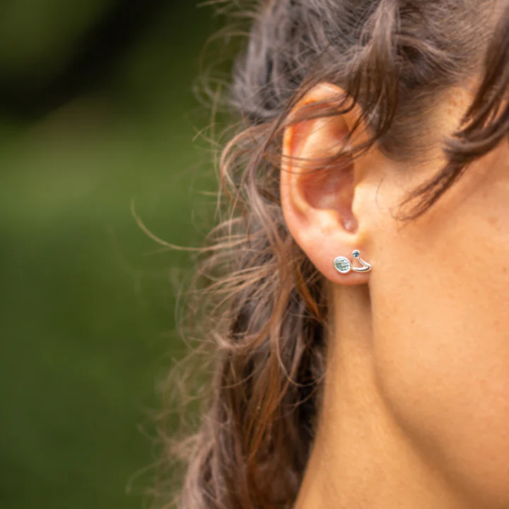 Deze sterling zilveren oorknoppen bevatten beide een 5 x 4 mm blauwe kwarts en een 2 mm ronde blauwe topaas.