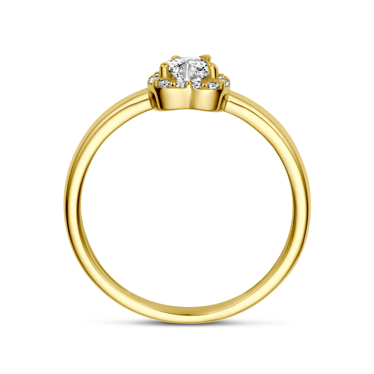 14k Geelgouden ring uitgevoerd met een hart en zirkonia. De ring heeft een breedte van 6.5mm.