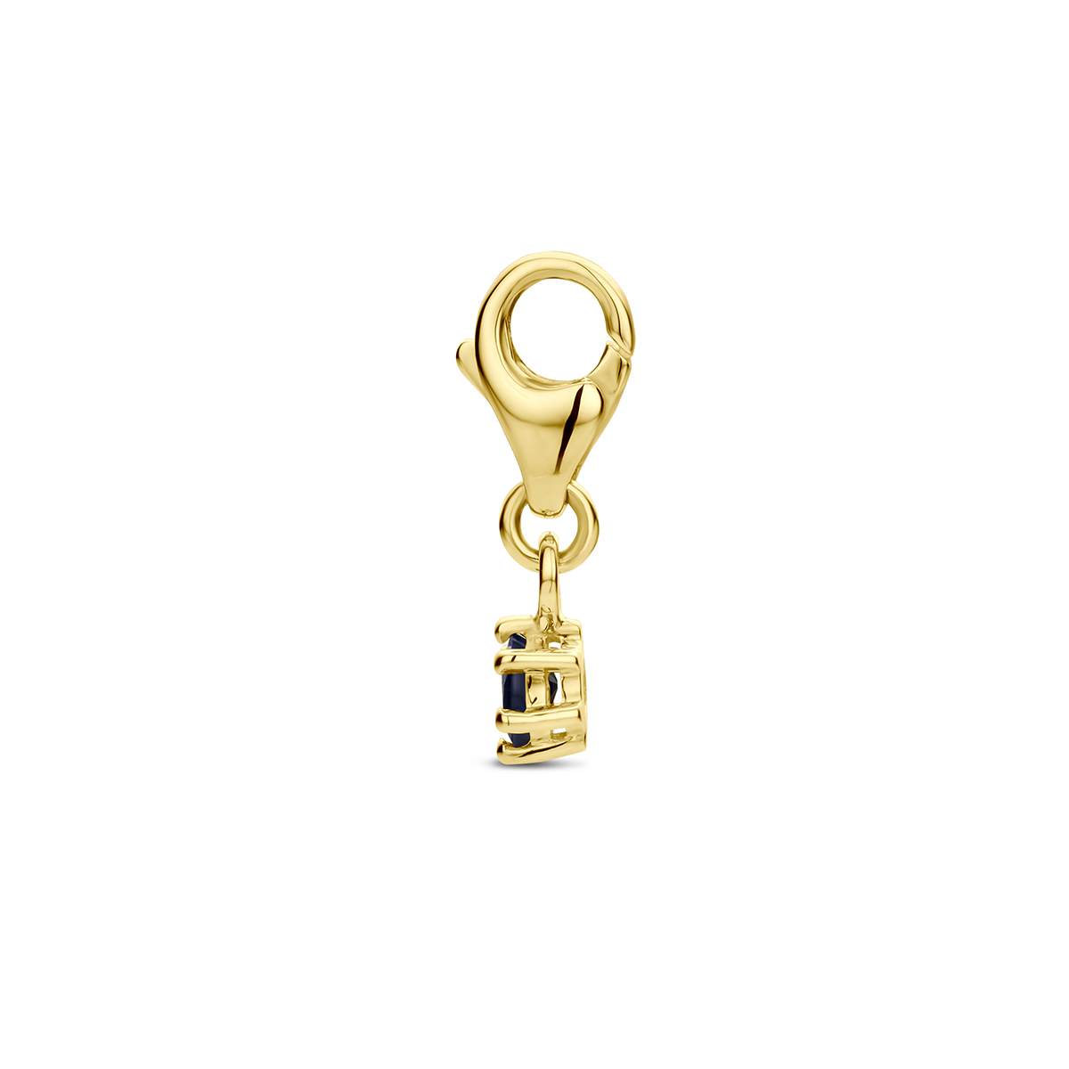 14k Geelgouden slotbedel uitgevoerd met een geboortesteen. De hanger heeft een totale hoogte van 15.5mm.