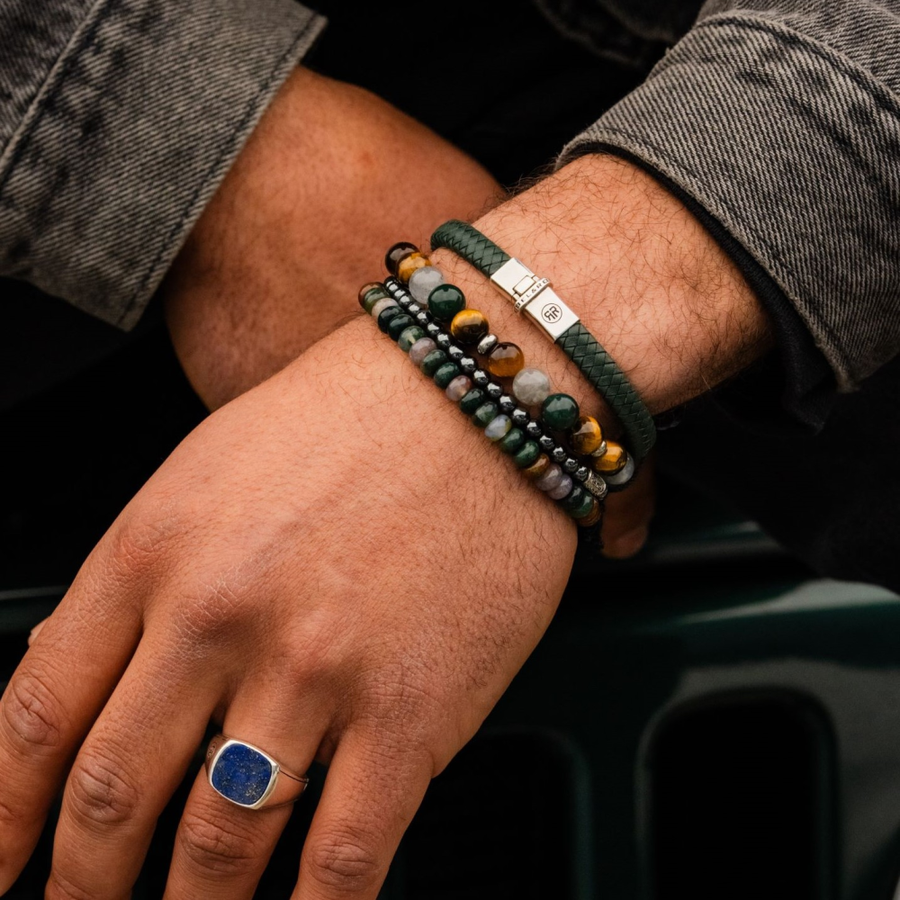 De Small Braided armband van Rebel and Rose is een handgemaakte armband met volledig zilveren sluiting. Het donkergroene leer is 7mm breed en met veel zorg en vakmanschap gelooid door de ambachtslieden van Rebel and Rose. Prachtig rundleer dat mooier en soepeler wordt naarmate je het langer draagt. Ze doen het perfect in combinatie met onze Sterling Zilveren armbanden, ringen en kralen armbanden.