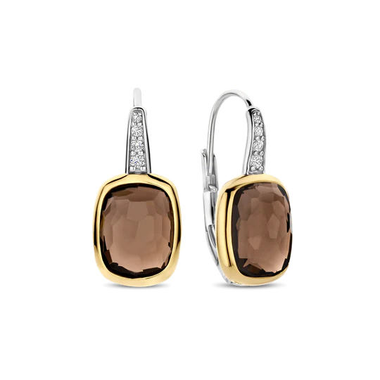 Laat je omringen door zacht contrast met deze TI SENTO vergulde oorbellen 78041SQ. Vervaardigd uit 925 sterling zilver tonen deze verfijnde leverback oorbellen een transparante smoky-brown kussenvormige steen, zacht gefacetteerd voor een warme, lichtvangende gloed. De steen is omsloten door een gladde goudkleurige randzetting en hangt aan een platinakleurig vergulde haak, pavé gezet met briljant geslepen witte zirconia. De combinatie van de aardse tint en stralende fonkeling maakt ze tot een elegante keuze voor zowel dagelijks gebruik als avondlijke verfijning. Nikkelvrij en hypoallergeen, ze bieden blijvend comfort met een luxueuze afwerking.