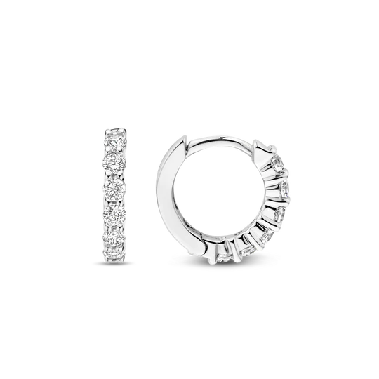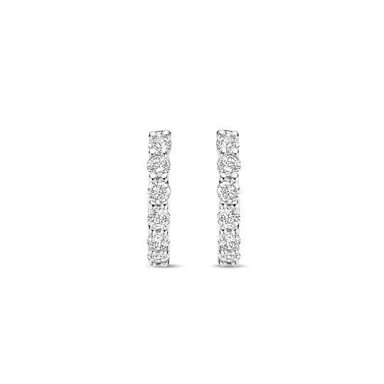 Deze TI SENTO zilveren huggies 7956ZI pronken met een oogverblindend patroon van witte zirkonia steentjes die tijdloze elegantie en verfijning uitstralen. Ze zijn gemaakt van eersteklas 925 sterling zilver en vervolgens verzilverd om ze te beschermen tegen dagelijks gebruik en om ze stralend te houden. De diameter van 12 mm zorgt voor een comfortabele en trendy pasvorm. Hun kleine formaat en veelzijdige ontwerp maken ze ideaal om solo te dragen voor een subtiele maar edgy look of voor gelaagdheid met andere oorbellen voor extra drama en flair. Verwen jezelf met de tijdloze allure van onze zilveren oorbellen met grotere zirkonia steentjes en til je Ear Party naar nieuwe hoogten. Deze huggies worden zeker een favoriet sieraad in je juwelencollectie en voegen een vleugje glamour en glans toe aan elke outfit. Net als al onze sieraden zijn deze huggies nikkelvrij en hypoallergeen, waardoor je niet alleen verzekerd bent van stijl, maar ook van comfort en kwaliteit.
