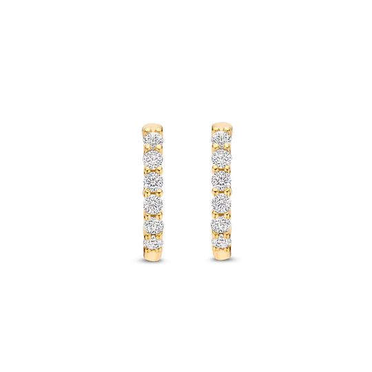 Deze TI SENTO vergulde kleine oorbellen 7957ZY, versierd met een oogverblindende rand van zirkonia's, getuigen van tijdloze elegantie en verfijnde glamour. Ze zijn met precisie vervaardigd uit eersteklas 925 sterling zilver en vervolgens geplateerd met geelgoudkleurig voor een vleugje glans. De oorbellen hebben een delicate diameter van 14 mm en vormen een subtiele maar fascinerende toevoeging aan je sieradencollectie. Deze luxe basics maken een statement voor elke gelegenheid, of het nu een casual uitje is of een formele aangelegenheid. Draag ze solo of combineer ze met andere oorbellen voor een in het oog springende Ear Party, ze zullen zeker een geliefd sieraad worden in je sieradencollectie en een vleugje sprankeling en verfijning toevoegen aan elke outfit. Zoals al onze sieraden zijn deze kleine oorbellen nikkelvrij en hypoallergeen, waardoor ze niet alleen stijlvol zijn, maar ook comfortabel en van goede kwaliteit.