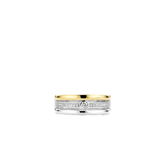 TI SENTO stapelring gemaakt van gerhodineerd sterling zilver. De ring heeft een gold plated laag en is pavé gezet met zirkonia's. Je kunt deze ring combineren met andere sieraden uit TI SENTO's collectie met gold plated laag.