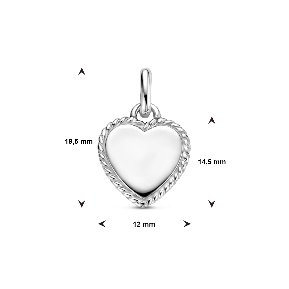 Gerhodineerd 925 zilveren graveerhanger uitgevoerd in de vorm van een hartje. De dikte van de graveerplaat is ongeveer 1.5mm.