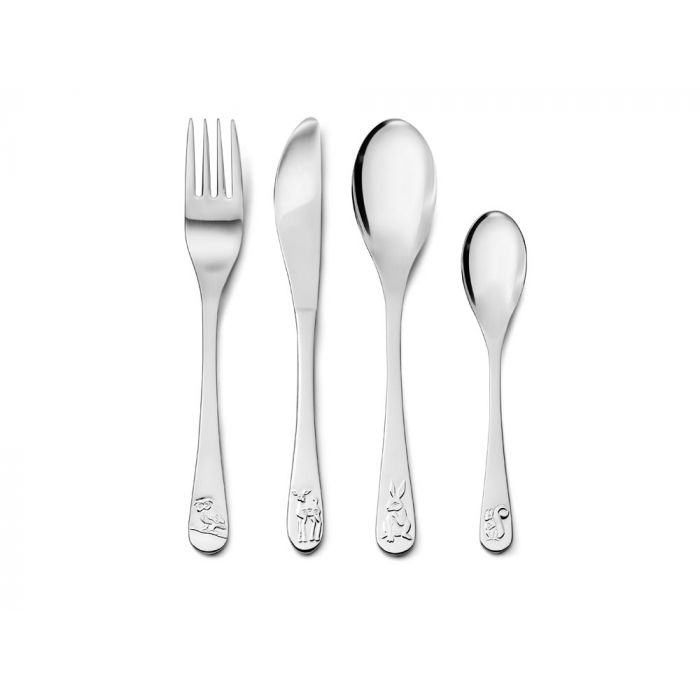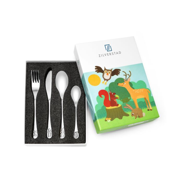 Deze lieve bosdieren maken eten nog leuker voor dierenliefhebbers. Op het bestek staan een hert, eekhoorn, haas en een uil afgebeeld. Verpakt in een mooie geschenkverpakking. Het bestek kan in de vaatwasser en de bestekonderdelen kunnen worden gegraveerd.