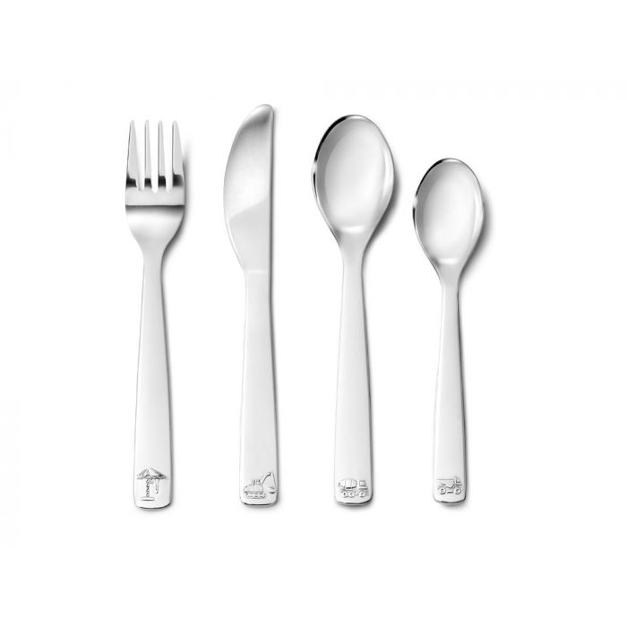 Met deze stoere 4-delige bestekset wordt eten nog leuker! Op de onderdelen staan een graafmachine, kiepwagen, cementwagen en een kraan in reliëf. Omdat het bestek is vervaardigd uit 18/10 RVS kan het in de vaatwasser. De bestekonderdelen kunnen worden gegraveerd.